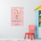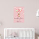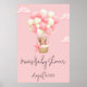 PLACA DE CHUVA DE BEBÊ ROSA COM NUVENS E BALÕES ROSAS E UM URSO DE PELÚCIA.