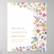 Esta elegante placa de boas-vindas certamente alegrará o seu evento. O design apresenta coloridas flores silvestres em aquarela misturadas com folhagens verdejantes. Use os campos de texto para personalizar o cartão com sua própria redação e detalhes. A cor do fundo do convite é definida como branco, mas sinta-se à vontade para escolher uma nova cor de preenchimento para combinar com o tema do seu casamento. Se você quiser alterar o estilo da fonte, cor ou posicionamento do texto, basta clicar no botão "Personalizar ainda mais".