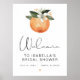 Este letreiro de boas-vindas para chá de panela de noiva apresenta uma laranja-mandarina clementina em aquarela com flores brancas em aquarela fofas e uma fonte de letra divertida. Este letreiro de boas-vindas é perfeito para o seu chá de panela ou brunch de noiva com tema cítrico ou pode ser usado para qualquer outro evento inspirado em frutas tropicais.