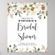 Dê as boas-vindas aos convidados para o seu evento com este sinal de boas-vindas de chuva de noiva rústico e caprichoso. Ele apresenta magnólias brancas, rosas cor-de-rosa, eucalipto, folhagens e guirlandas de algodão. Este sinal de boas-vindas floral é perfeito para chuvas de noiva de outono. Personalize adicionando nomes e mensagens.