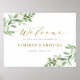 Dê boas-vindas aos convidados com este elegante sinal de boas-vindas personalizável para chá de noivos. Ele apresenta ilustrações em aquarela de folhagens e flores brancas com caligrafia caprichosa. Personalize este sinal de boas-vindas para chá de noivos em aquarela adicionando seus próprios detalhes. Este sinal de boas-vindas para chá de noivos com folhagens é perfeito para eventos de primavera e inverno.