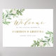 Dê as boas-vindas aos convidados com este elegante sinal de boas-vindas personalizável para a chuva de noivos. Ele apresenta ilustrações em aquarela de verde e flores brancas com caligrafia caprichosa. Personalize este sinal de boas-vindas para a chuva de noivos em aquarela adicionando seus próprios detalhes. Este sinal de boas-vindas para a chuva de noivos com verde é perfeito para eventos de primavera e inverno.