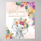 Poster Chuva Tropical de Flores Elefante Chá de Bebê Bem-