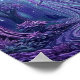 Este cartaz surrealista apresenta uma floresta encantada que se desdobra numa paleta de violeta profundo, lavanda e azul meia-noite, criando uma atmosfera que se sente ao mesmo tempo luxuosa e sobrenatural. Árvores imponentes enquadram a cena como guardiãs elegantes, seus troncos retorcidos e copas densas formando um corredor natural que atrai o olhar para o centro luminoso. No coração da composição, uma figura flutuante misteriosa ergue-se com graça sem esforço, envolta em vestes fluidas e coroada por um chapéu pontiagudo, evocando o encanto da magia, transformação e imaginação indomada. A imagem inteira brilha com uma textura onírica, como se pintada em camadas de luz e sombra. Faixas verticais em cascata no fundo sugerem chuva caindo, energia etérea ou uma cachoeira oculta de cor, adicionando movimento e profundidade à cena. Abaixo, ondulações concêntricas se espalham por uma poça reflexiva, ancorando a fantasia num ponto focal hipnótico e reforçando o sentido de calma, poder e ritual. Este é um mundo que se sente premium, místico e imersivo - uma visualização evocativa construída para capturar a atenção instantaneamente. Sugere descoberta, elegância e um toque do sobrenatural, tornando-o ideal para uma campanha que queira se sentir ousada, cinematográfica e ines