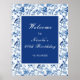 Lindo sinal de boas-vindas para chá de aniversário com pássaros e flores azuis em estilo chinoiserie. Perfeito para um casamento de primavera ou verão. As palavras podem ser alteradas para atender aos seus detalhes ou requisitos.