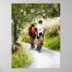 Dois ciclistas de corridas de estradas que desfrutam das faixas rurais do País de Gales. Aquarela.