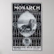 "Ande um Monarca e fique na frente." Bela poster de bicicleta branca e preta - consegue ver as bicicletas? No início só vi o leão! Olhe com cuidado. O fundo diz, CICLO MONARCH MFG CO. CHICAGO. NOVA IORQUE - LONDRES