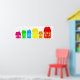 Ótima ilustração de um grupo de casas em diferentes cores e tamanhos, de pé em fileira. Imagem disponível em vários presentes e produtos.