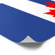 Esta design apresenta a bandeira de Toronto, que é a capital da província canadense de Ontário. Toronto é a cidade mais populosa do Canadá e uma das cidades mais populosas da América do Norte. A cidade é A cidade é parte do Ouro de Ferradura, ao redor do extremo oeste do lago Ontário. Toronto é um centro internacional de finanças, negócios, artes e cultura; é reconhecido como uma das cidades mais multiculturais e cosmopolitas do mundo. A bandeira de Toronto, Ontário, foi projetada pela primeira vez em 1974: mostra as torres gêmeas da Prefeitura de Toronto sobre um fundo azul, com a folha de bordo vermelha da bandeira do Canadá em sua base, representando a Câmara do Conselho na base das torres, enquanto a forma do espaço acima e entre as duas torres sugere a letra "T", primeira letra de Toronto.