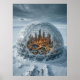 Uma cidade futurista deslumbrante fechada em uma enorme cúpula de vidro, cercada por uma paisagem desolada e gelada. Luzes douradas quentes contrastam lindamente com a neve fria, criando uma poderosa imagem visual de sobrevivência, inovação e isolamento. Perfeito para interiores modernos, fãs de ficção científica e arte de parede de destaque. Ideal para tela, pôsteres e impressões em metal.