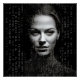 Uma renderização digital de uma mulher cientista com formação ASCII.
