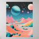 Esta ilustração cativante apresenta uma impressionante mistura de planetas e montanhas majestosas contra uma vasta paisagem do deserto. As cores vibrantes e os detalhes intrincados criam uma experiência visual mesmerizante.
