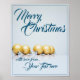 Poster Cinco bolas de natal de ouro - escrevendo azul