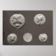 Cinco moedas de Roman, que apresentam Janus, Júpiter, Mercúrio e Minerva, 753 BC- 476 AD, localizadas na Bibliotheque Nationale, Paris, França.
