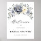 O poster de boas-vindas do Elegante chá de panela de inverno floral apresenta cinzas elegantes, marfim e buquê de flor de água prateada verde-arborizada. Entre em contato comigo para obter ajuda sobre a personalização ou se você precisar de outro produto com este design.