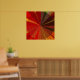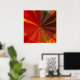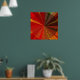 Esta poster apresenta um desenho abstrato geométrico decorativo que seria fantástico na sua parede! Cores brilhantes de vermelho, laranja, ouro, marrom, amarelo e verde convergem no centro em um padrão de vórtice. O círculo central tem triângulos repetidos de várias texturas tecidas. Fora do círculo estão linhas das mesmas cores vivas que se movem em direção ao meio.
