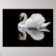 Fotografia de um cisne com reflexão sobre fundo preto