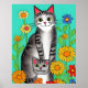 Um poster bonito para amantes de gatos. Gato colorido, gatinho e flores, estilo de arte popular, gerada por IA com trabalho de arte.