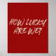 Diga simplesmente: "Como Somos Sortudos?" Esta poster romântica combina a design minimalista moderna com a tipografia ousada da escrita do pincel, criando uma peça de arte de parede estética quente vermelha que celebra o amor, a gratidão e a magia de estar juntos. O fundo texturizado da Crimson adiciona profundidade e riqueza, enquanto a carta branca limpa mantém o olhar fresco e elevado — uma afirmação perfeita para uma parede de galeria, quarto, sala de estar ou entrada. Projetada para casais e casas corajosas, esta arte romântica de muros faz um presente de aniversário sem esforço, uma surpresa do Dia do Namorados, ou uma decoração de casamento ponderada. É também um lembrete diário significativo para recém-casados, parceiros de longa data, colegas de quarto tornaram-se melhores amigos, ou qualquer um que queira uma dose diária de apreciação. Disponível no Zazzle como um poster com vários tamanhos e opções de papel (upgrades mate, semisgloss, enquadrado disponíveis na página do produto), esse impressão de aspas versátil é fácil de ser estilo em espaços clássicos, modernos ou aconchegantes. Emparelhe-o com quadros pretos para um aspecto chic, madeira natural para um tom quente ou exibição não moldada para uma vibração minimalista. É uma peça saborosa de decoração romântica em casa que lê igualmente bem em quartos, escritórios, ou uma mesa de boas-vindas recepções de casamento. Se você ama citações de gratidão, posters de script de pincel, e decoração que se sente pessoal e otimista, esta peça vai ajustado mesmo. Tratem o vosso parceiro — ou a vós próprios — a uma lembrança diária de quão sortudos vocês são. Adicione-o ao seu carrinho hoje e faça seu espaço se sentir como amor. ( Para aqueles que compram a versão de Download Instantâneo, por favor, envie-me uma mensagem se você deseja tamanhos adicionais para melhor atender às suas necessidades.)