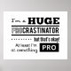 Uma citação engraçada sobre procrastinação que diz "Sou um grande procrastinador, mas tudo bem! Pelo menos sou Pro em algo". É um jogo de palavras com "pro" que significa profissional e como se relaciona com as letras iniciais de procrastinador. Para os preguiçosos com senso de humor!