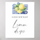 Um tema de chá de panela de limão Ela Encontrou Seu Grande Amor é perfeito para o verão. Frutas cítricas refrescantes e frias sempre criam belas apresentações e refrescos. Azulejos azuis mediterrâneos e aquarela de limões. Limões em estilo grego. Itens combinando disponíveis.