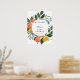Bem-vindos convidados ao seu chá de fraldas com este belo poster, com um quadro circular rodeado de laranjas, limões, folhas e verde. Adicione o nome do convidado de honra, a data de chá e o texto de boas-vindas personalizado usando os campos fornecidos.