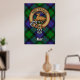 Crachá da crista Clan Blair rodeado por uma correia e fivela sobre fundo tartano. Texto personalizado.