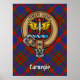 Crachá da crista Clan Carnegie rodeado por uma correia e fivela sobre fundo tartano. Custom Text.