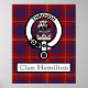 Clã Celta Hamilton texto e crachá da crista em fundo tartano