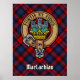 Crachá da crista Clan MacLachlan cercado por uma correia e fivela sobre fundo tartano. Custom Text.