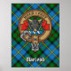 Crachá da crista Clan MacLeod rodeado por uma correia e fivela sobre o tartan de caça verde. Texto personalizado.