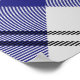Crachá da crista Clan MacPherson cercado por uma correia e fivela sobre fundo azul de tartã. Custom Text.
