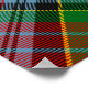 Crachá da crista Clan MacPherson cercado por uma correia e fivela sobre fundo tartano. Custom Text.