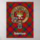 Crachá da crista Clan Robertson cercado por uma correia e fivela sobre fundo tartano. Custom Text.