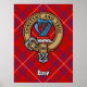 Crachá da crista Rosa de clã rodeado por uma precinta e fivela sobre fundo de tartã. Custom Text.