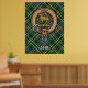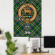 Crachá da crista Clan Scott rodeado por uma correia e fivela sobre fundo de tartã verde. Texto personalizado.