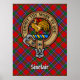 Crachá da crista de clã Sinclair rodeado por uma precinta e fivela sobre fundo de tartã. Custom Text.