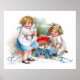 Um belo poster vintage com duas garotas bonitinhas brincando com coelhos, pintado pela ilustradora americana Ellen Hattie Clapsaddle.