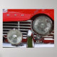 Imagem detalhada mostrando faróis e grelhas em vermelho Triumph vermelho