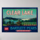 Póster Clear Lake Pear Crate LabelLake County, CA