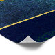 Uma paisagem abstrato com cores e texturas únicas mostrando uma cena de montanha da noite com as luzes brilhantes dos alpinistas e uma lua em tons de azul, ouro, ciano e amarelo.
