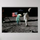An APOLLO astronaut and a fish-like alien stand face-to-face on the lunar surface with the American flag in the background. A UFO hovers above, and the crescent moon is visible in the distance.