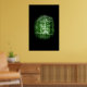 A famosa cobertura de Turim com a imagem de Jesus queimado nas suas fibras é mostrada aqui em um verde em preto para se destacar em qualquer decoração.