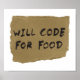 Coder em busca de trabalho...irá codificar para comida. O dinheiro é opcional. Excelente para programadores, cientistas da computação e engenheiros em busca de emprego, comida ou apenas risada de excelente.