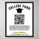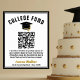 Este moderno poster de fundos de festa de formatura de faculdade personalizada e personalizada apresenta um link de código QR para os convidados a contribuírem para as despesas da universidade do formando do segundo grau. Personalize esta impressão com sua mensagem, o nome da escola e o ano.