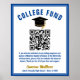 Este moderno cartaz de fundo de faculdade personalizado para festa de formatura azul e dourado apresenta um link de código QR de site para que os convidados contribuam para as despesas universitárias do graduado do ensino médio. Personalize esta impressão com sua mensagem, o nome da escola e ano.