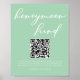Este poster de fundo de lua de mel verde de menta macia apresenta tipografia branca-quica para uma doce cerimônia de primavera ao ar livre. Script simples e elegante em impressões verdes pastéis sólidos tranquilo com seu código qr do site para uma recepção de jardim.