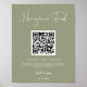Uma tipografia moderna e uma cor verde-senadora para a sua papelaria de casamento: escolha esta simples e elegante suite de casamento. Totalmente personalizável: você pode alterar o plano de fundo e a cor do texto conforme desejar. Substitua o código QR por seu próprio para dar aos seus convidados acesso ao seu desejo digital.