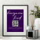 Este poster de pedestal roxo royal de lua de mel apresenta uma bela tipografia branca em uma sólida violeta profunda para um casamento noturno no inverno. Script minimalista e um impressão de cor ousada com o seu código QR do site para convidados.