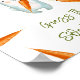 Convites para chuveiros de bebês neutros em termos de gênero. Apresentando o ditado "UM PEQUENO BUNNY ESTÁ A CAMINHO!", uma ilustração de um coelho aquoso (coelho) com cenoura em patas, e muitas cenouras cor de laranja. Itens correspondentes disponíveis.